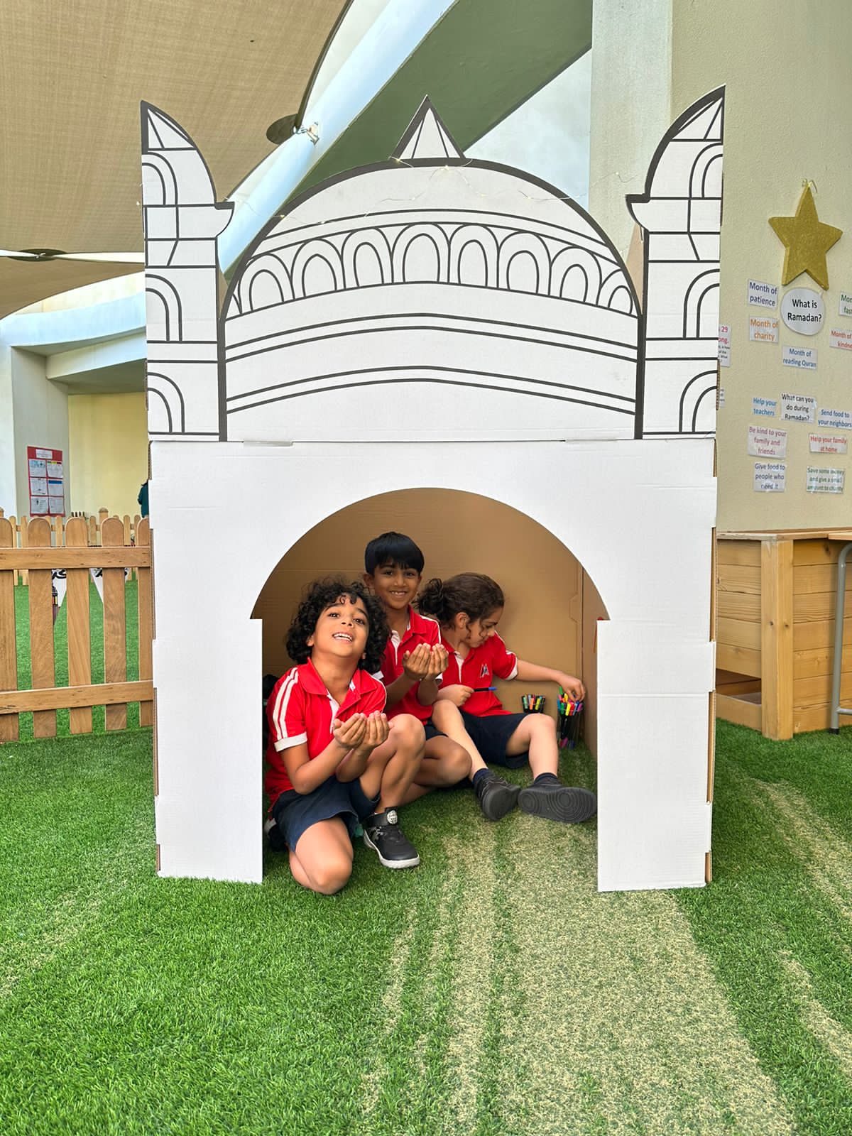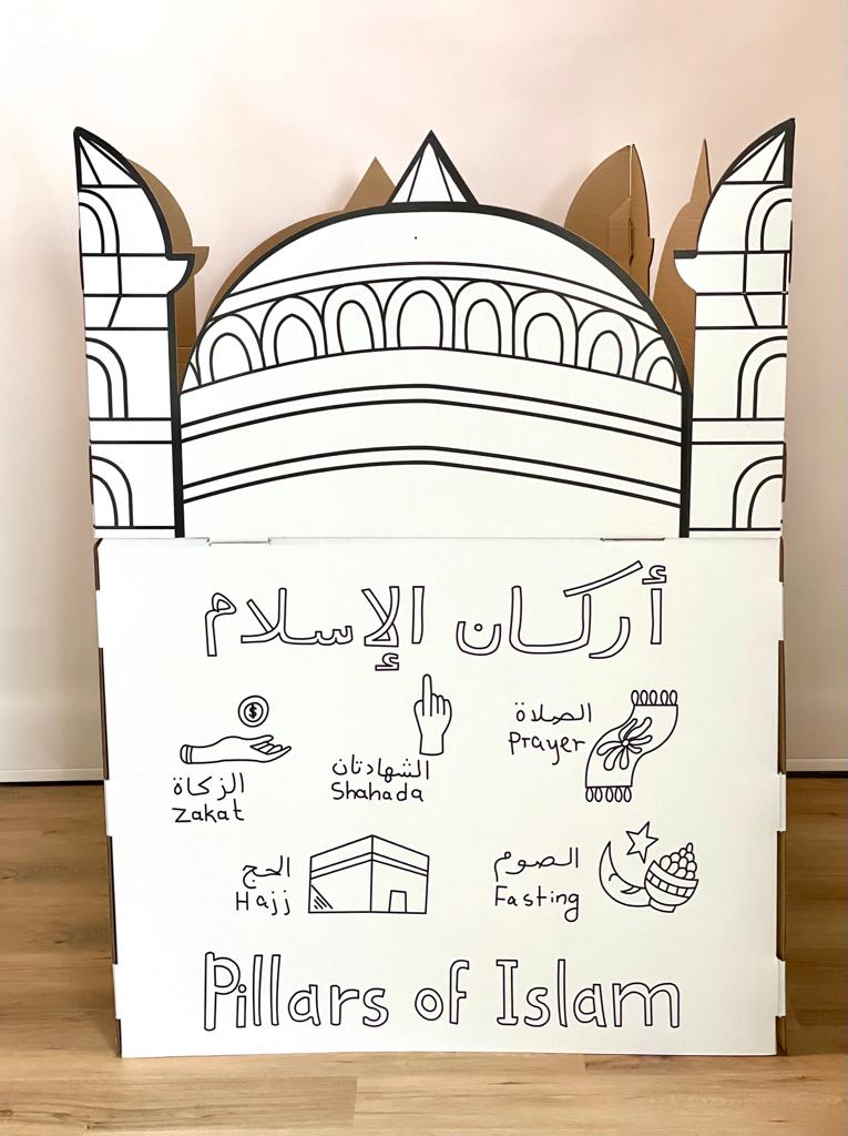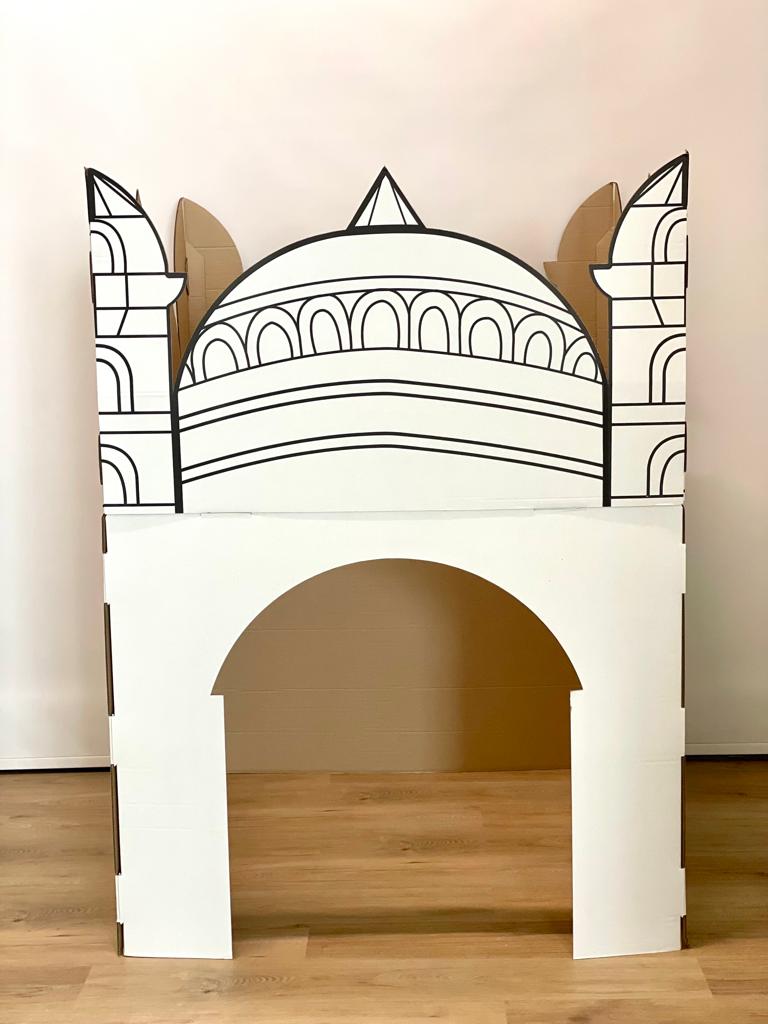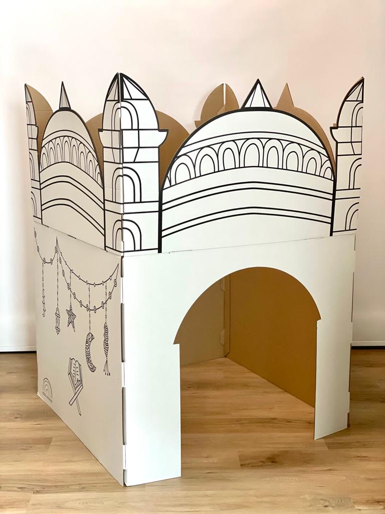 The Masjid Cardboard Structure is an creative, fun and educational way for children to be encouraged to Pray and familiarize themselves with the Masjid while being able to personalise the design of the masjid as it is made 100% from recycled cardboard. This product comes with a free set of watercolours and is suitable for children to use paint, felt tips, markers and pencils.